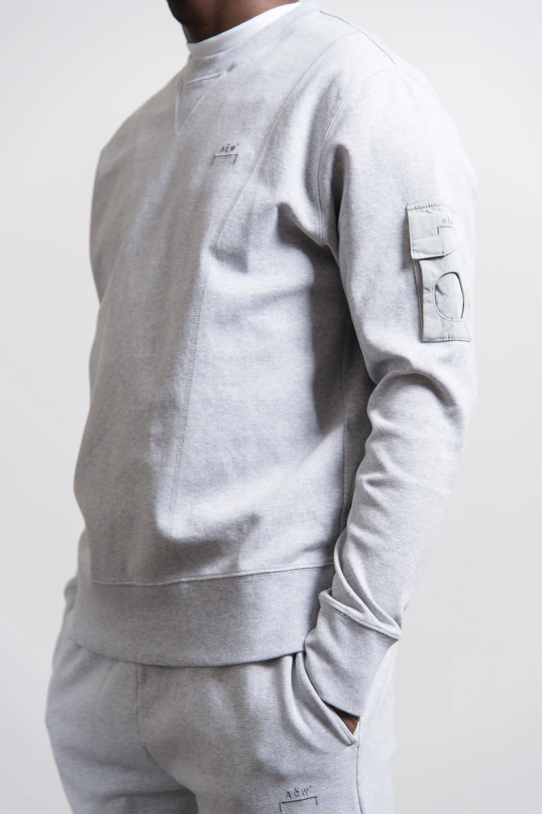 - Long sleeve mid-weight cotton jersey crewneck sweater in Grey MelangeĀ