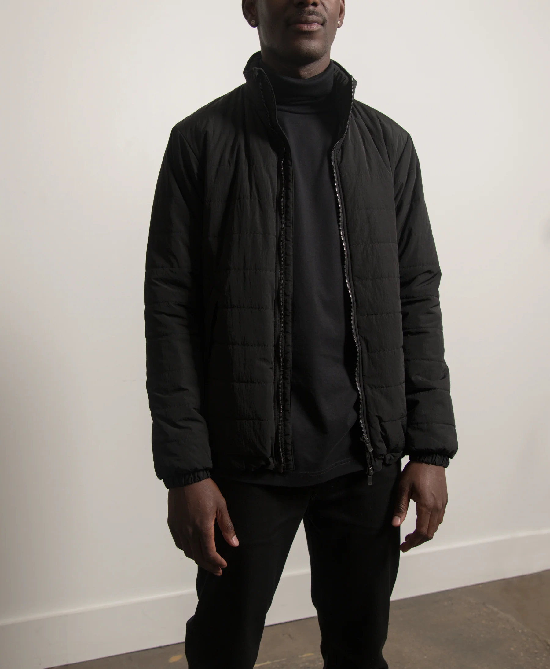 - Long sleeve quilted puffer jacket in Black