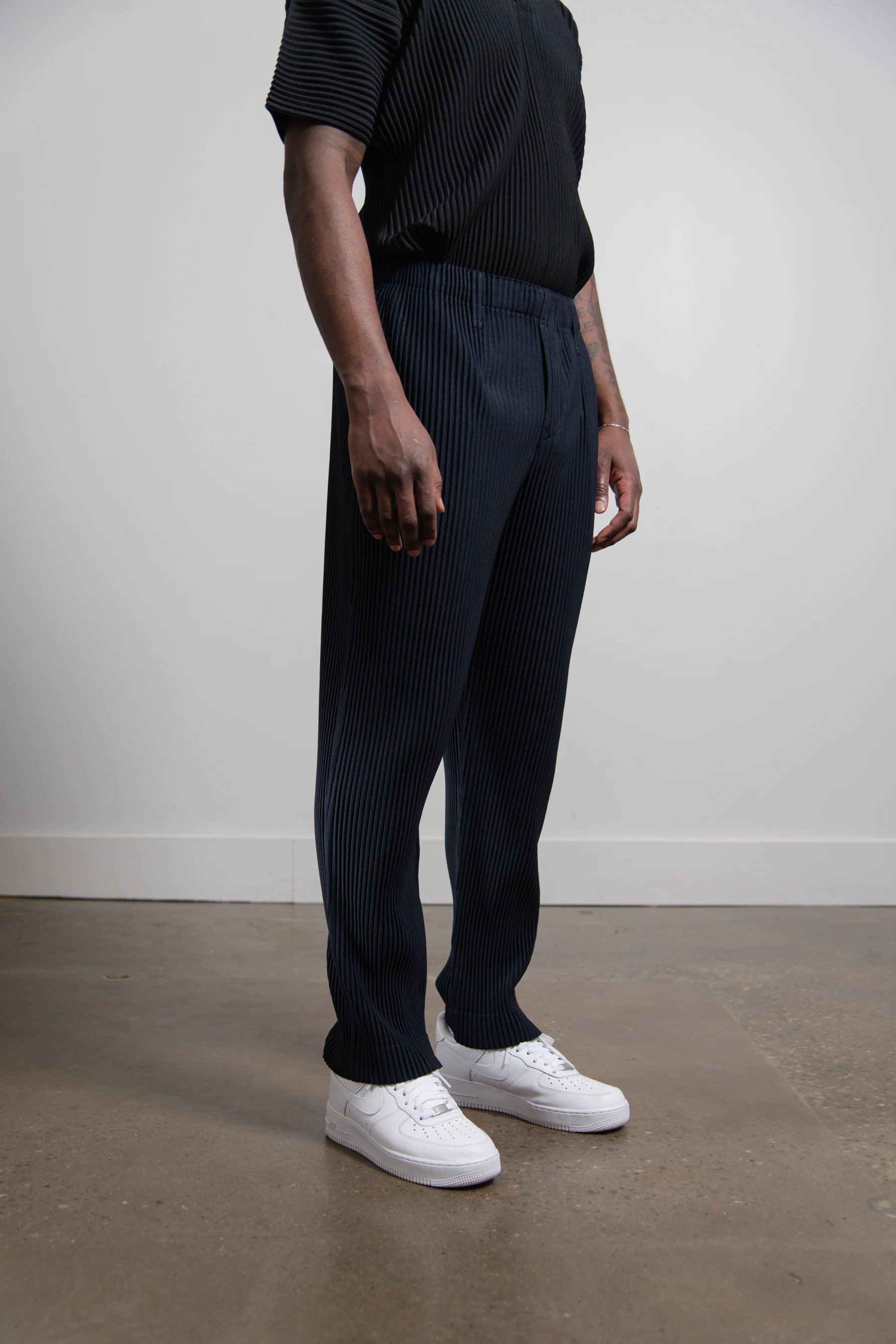 - Full length pleated trousers in navy