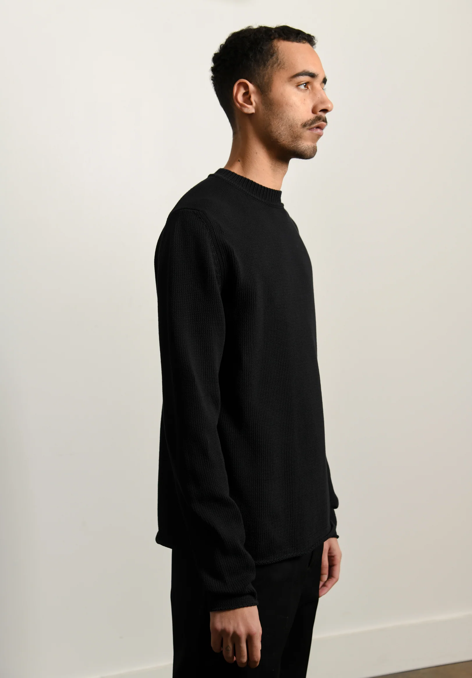 - Long sleeve cotton crewneck sweater in black