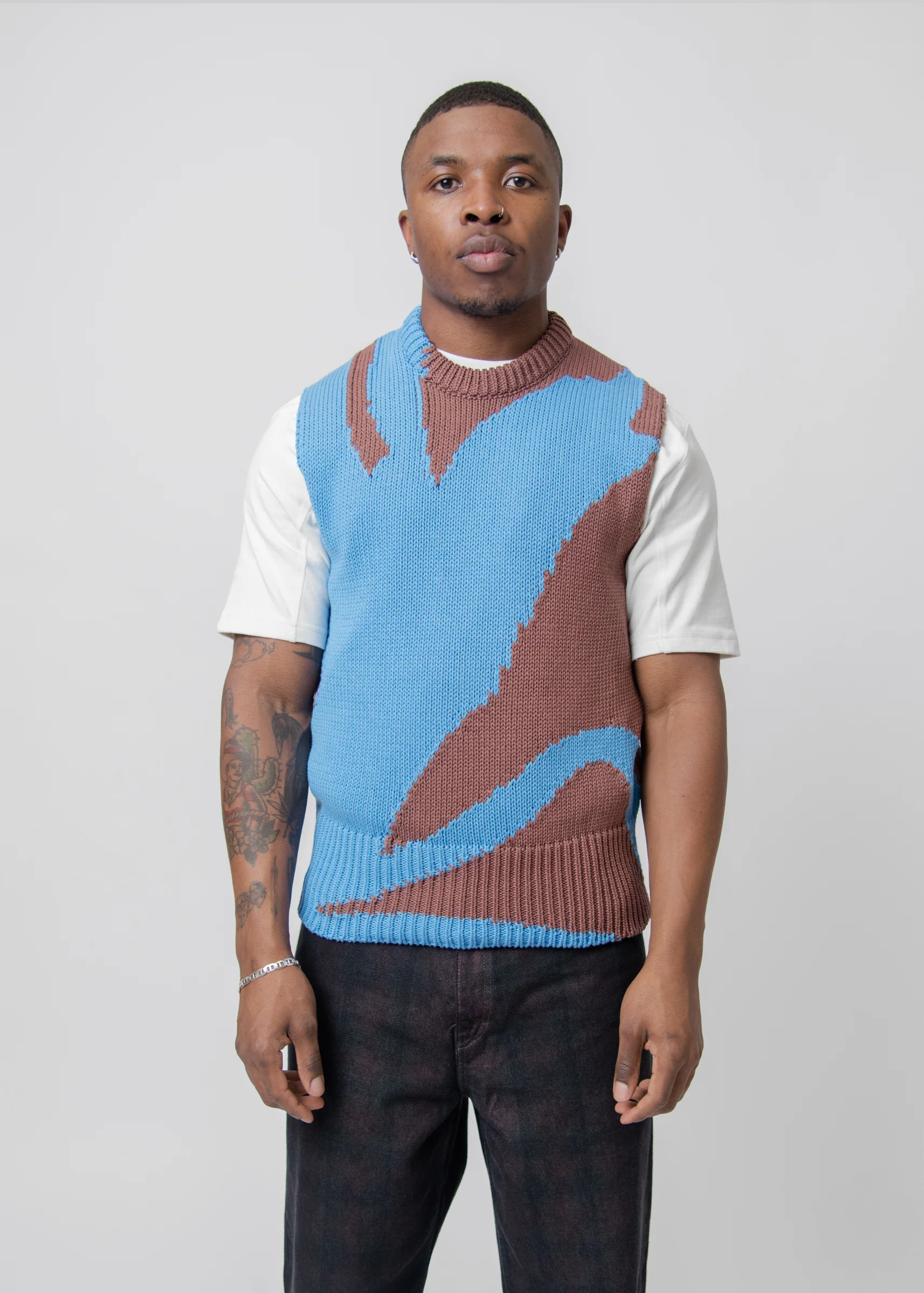 Intarsia Knit Gilet Blue/Brown J22FB0109