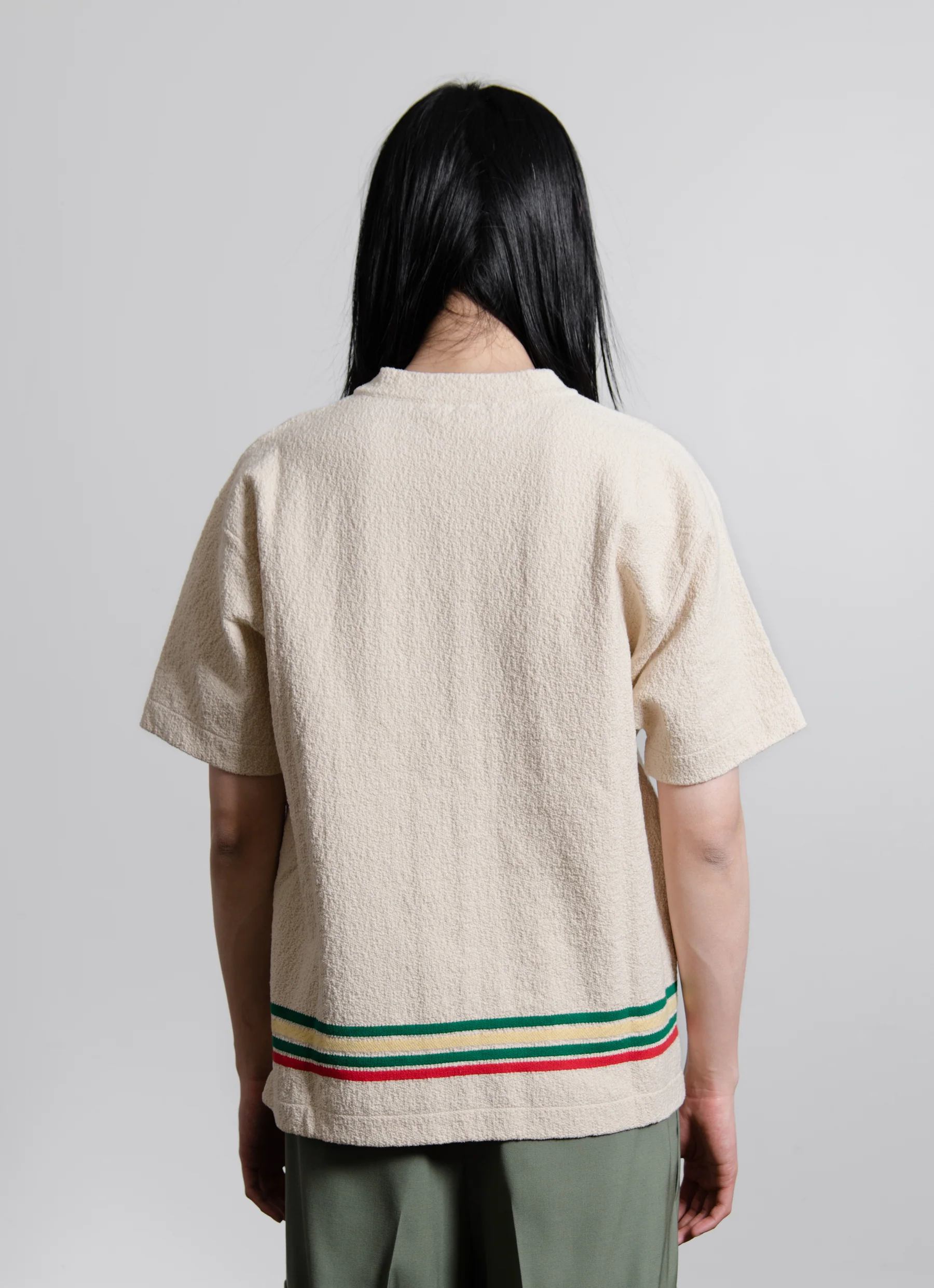 - Short sleeve stretch cotton-blend bouclĂ© t-shirt in NaturalÂ